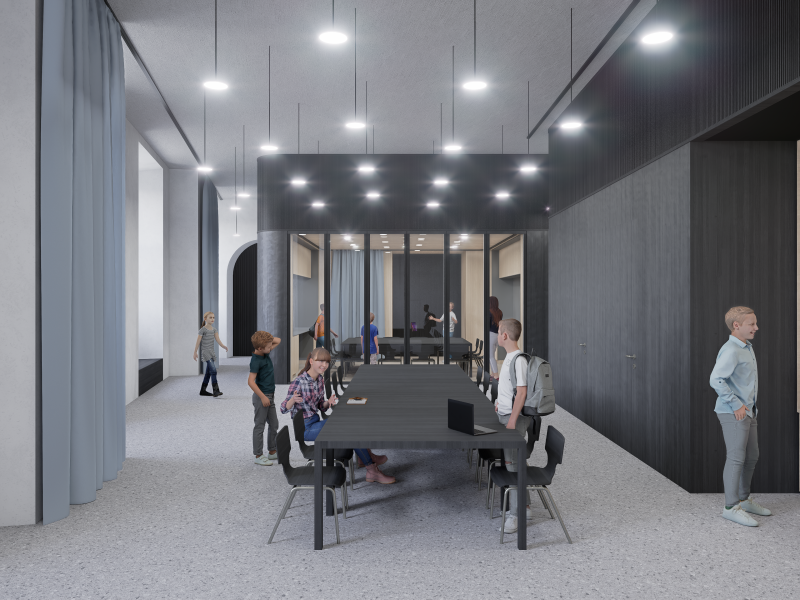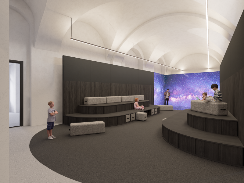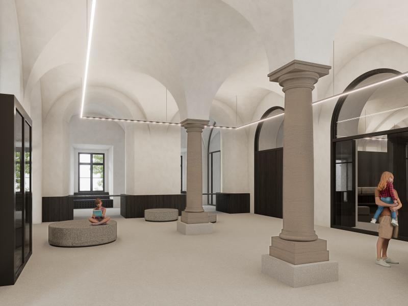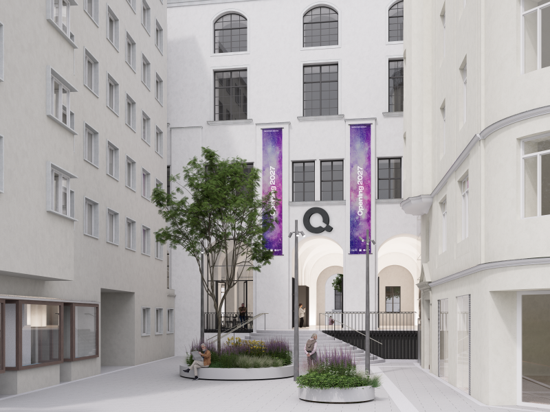 Der Zugang zum Q erfolgt künftig über ein neues Foyer an der öffentlichen Passage. Durch die Adaptierung des Gebäudes entstehen neue Räume und Ausstellungflächen, die vielseitig genutzt werden können. Zahlreiche Ausstellungsbereiche, Workshopräume, Labore sowie ein Diskurstheater laden dazu ein, einige spannende Stunden im zukünftigen Center zu verbringen.