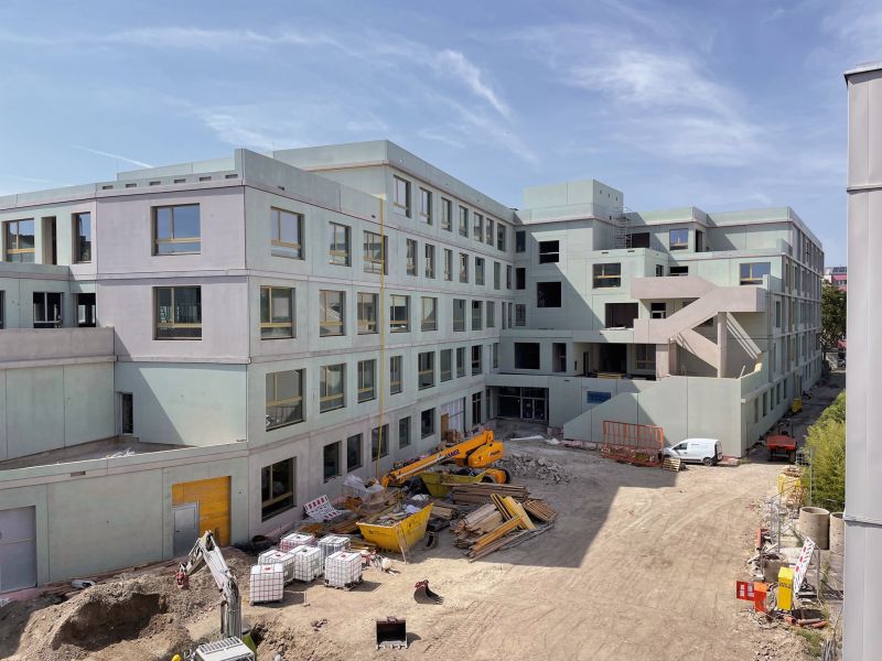 Die Energieversorgung erfolgt über eine Kombination aus Fernwärme und Wärmepumpentechnologie. Auf dem Dach ist eine großflächige Photovoltaikanlage vorgesehen.