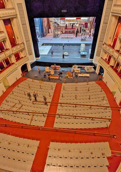 Aufbau der Bühnenlogen und temporäre Konstruktionen