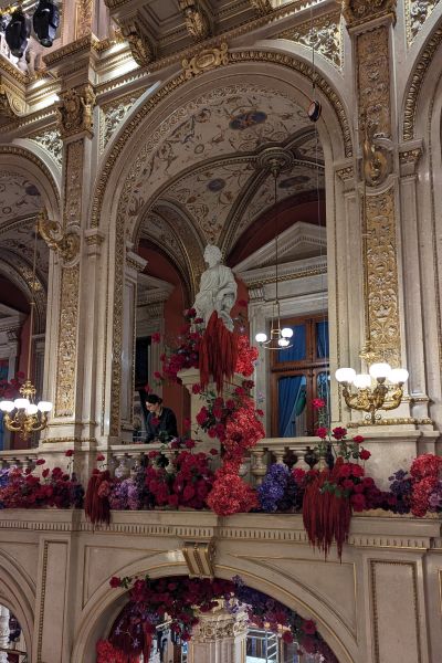 Neben diesen Hauptschauplätzen gibt es für unser Team noch vieles mehr zu beachten und kontrollieren. Die Aufenthaltsräume in den Bereichen außerhalb des Ballsaals sind teils eigens aufgebaute Räume, die Palmen-Bar wird speziell für die Opernballnacht errichtet, die Luster auf Seite der Bühnenlogen werden eigens montiert und vieles mehr verändert sich. Die meisten temporären Baumaßnahmen werden von V+P hinsichtlich der Sicherheitsaspekte kontrolliert.